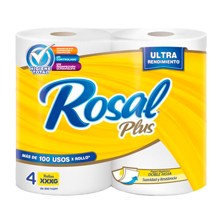 Papel Higiénico Amarillo Rosal Plus 600 Hojas 4 Und.